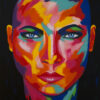Modern acrylverf schilderij op canvas. Kleur is energie. De schilderijen van mijn serie ‘Powerful Faces’ hebben allemaal een sterke aanwezigheid door hun kleurrijke uitstraling. Je kan op veel verschillende manieren kleur in huis halen, maar ALYN is echt uniek in haar soort.
