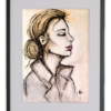Portret gemaakt van aquarelverf, pastelkrijt én verfstift op papier. Schilderij ELLE is een leuke mix van verschillende materialen in een speelse stijl. Op dit portret zie je de blonde ELLE met sproetjes en een stoere leren jas.