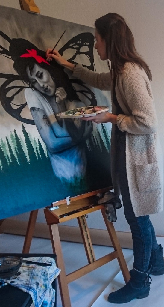 Ik maak vooraf altijd een (digitale) schets op basis van de klantwens en eventueel ingestuurde foto’s. Na toestemming van de klant en overeenstemming over termijn en prijs, begin ik aan het schilderij.